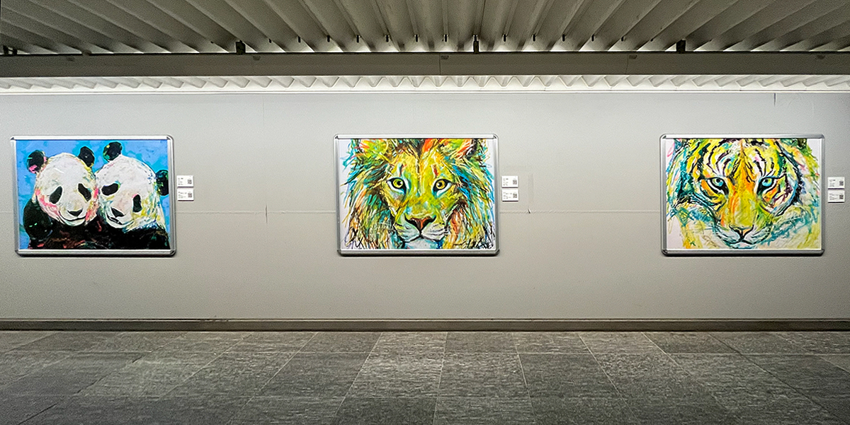 JR上野駅公園口の改札内通路に展示されているウォールアートです。ジャイアントパンダやハシビロコウ、コビトカバ、レッサーパンダが、上野らしくてかわいいですね。